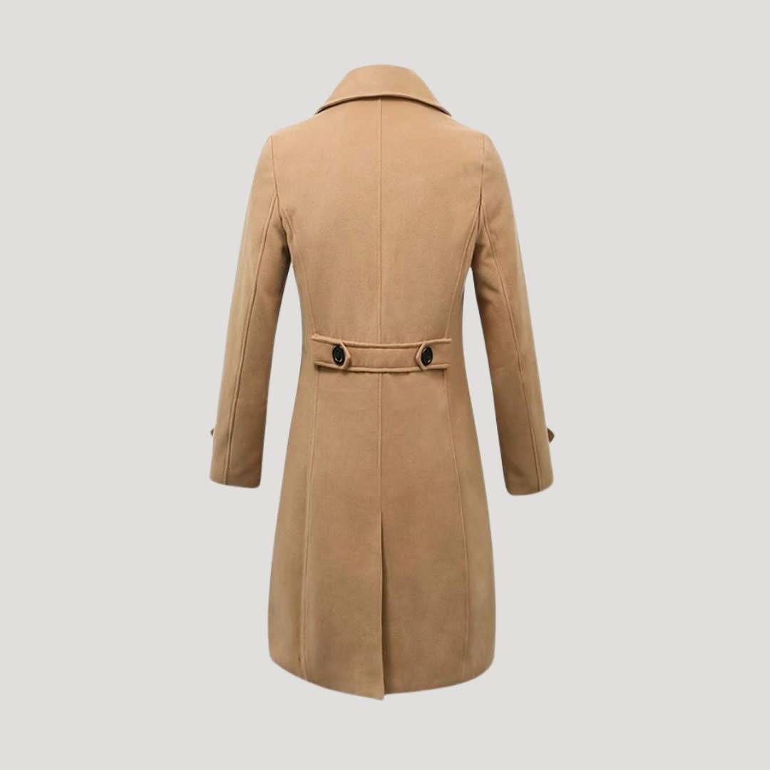 • Double-Breasted Design: Features a classic double-breasted front that enhances the coat’s polished and sophisticated appearance.