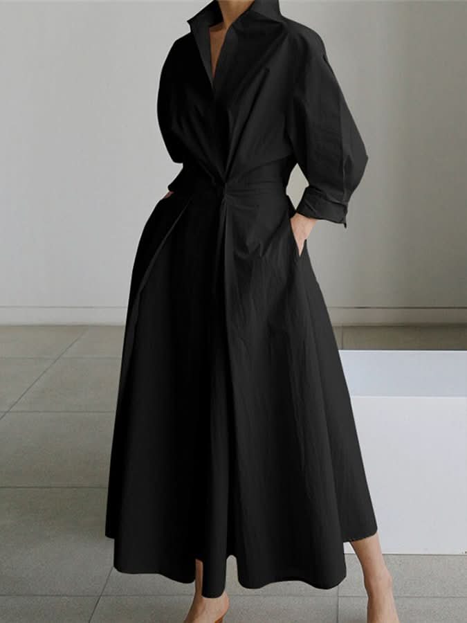 • Shirt-Style Maxi Design: Blends a timeless button-front look with a graceful, flowing silhouette.