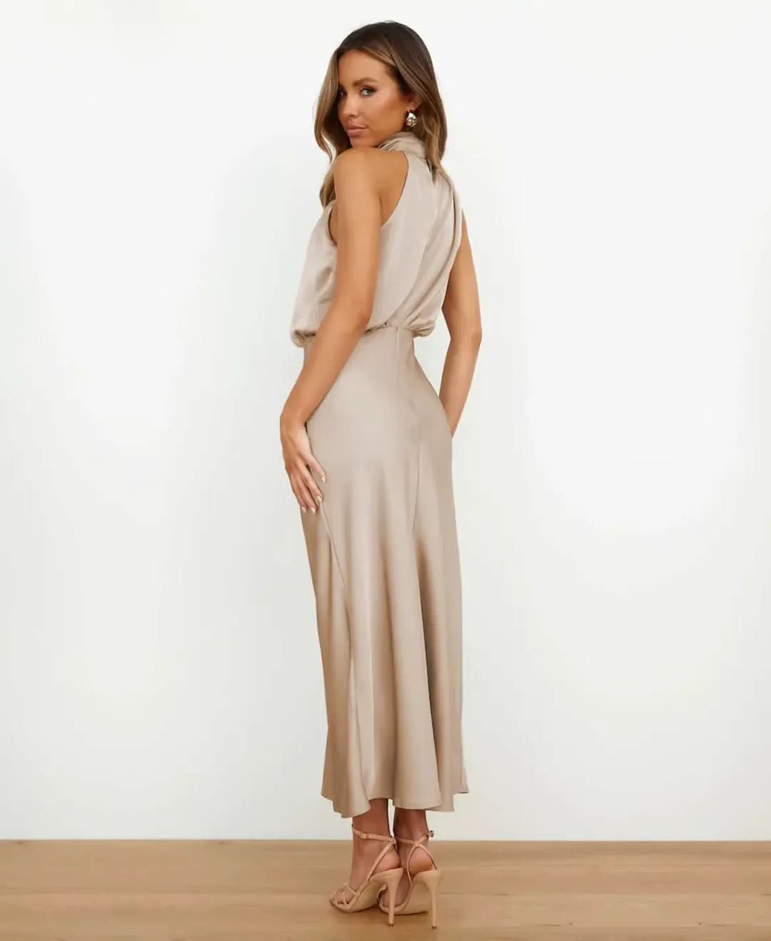 Radiant and stylish – the Catherine Women's Satin Halter Style Formal Midi Dress brings elegance to every occasion. With its glossy satin finish and refined halter design, this dress effortlessly accentuates the feminine shape. Perfect for parties, dinners, or weddings where class and style come together.
