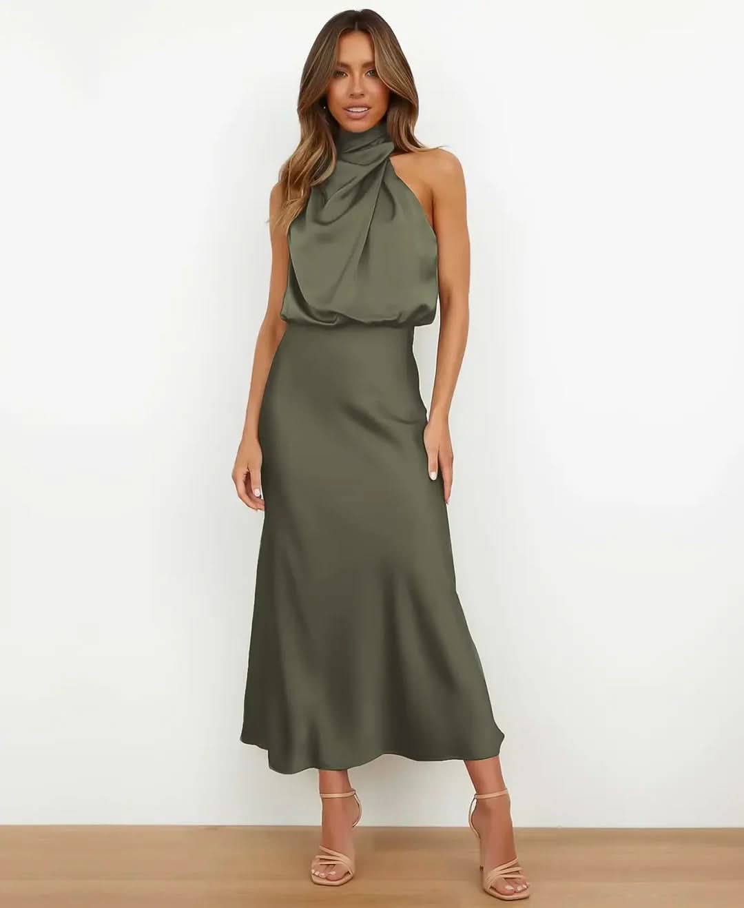 Catherine | Women’s Satin Halter-Style Formal Midi Dress
